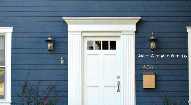 Using the blessed chalk mark the lintel of your front door (or front porch step) as follows:20 + C + M + B + 16 while saying: